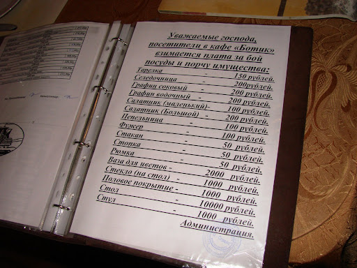 Объяснюсь. Заказчик хотел имитировать в своем кафе атмосферу лихих 90-х. Поэтому в конце концов мы придумали и предложили ему вот такой вариант меню, который и был с успехом принят и воплощен.